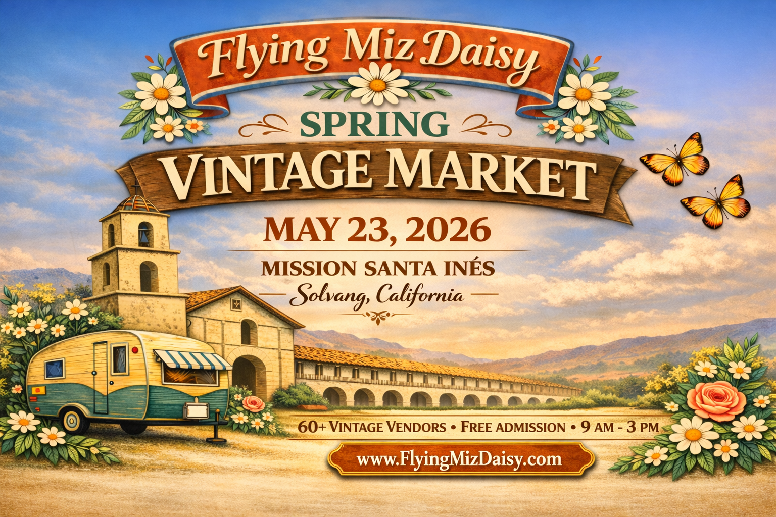 Flying Miz Daisy is a family-run vintage market and design brand dedicated to celebrating character, history, and individuality. We connect people with well-loved, one-of-a-kind pieces while fostering a community that values sustainability and timeless charm. Our mission is to bring beauty, soul, and personality into every space we touch.